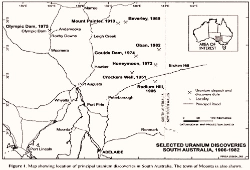 The CDA provided a regime under which a second phase of uranium mining development could take place. This saw the discovery of uranium at Bever, east of Mt. Painter [1969], at Honeymoon, about 75 km north-west of Broken Hill [1972], and at Olympic Dam on the Roxby Downs station [1975]. The Olympic Dam mine at Roxby Downs has been exporting to nuclear weapons states since it began.