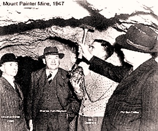 Both Oliphant and Playford visited Mt Painter in 1947.Shortly after the war, in November 1945, Playford passed legislation which enabled the government to take control of Uranium mining in the State. Amendments to the South Australian Mining Act saw control the mining, treatment and use of radioactive minerals and vesting ownership of uranium in the Crown. The federal government supported this State development with huge subsidies.