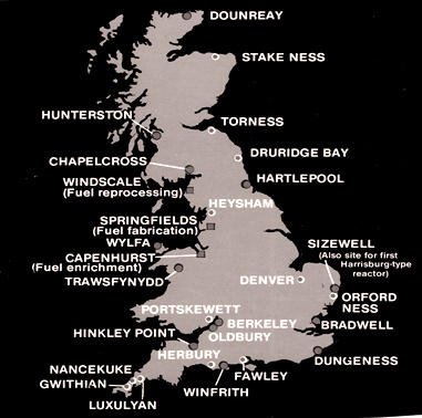 Map 2: Locations of Nuclear Power Stations in the UK. Circa 2002